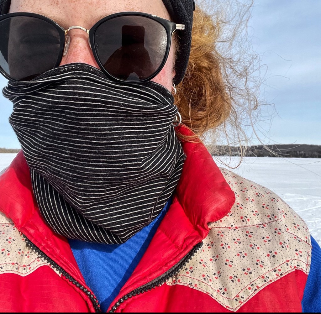 My niece posted a photo this winter while wearing the red vest originally sewed for her mother.