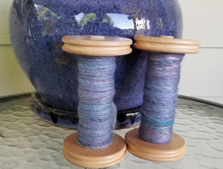 I am very behind on my blog reading and responding too. We were in Chicago for our son’s wedding this past weekend. It was wonderful! and now we are back home and back to reality, and catching up on stuff that I did not do while we were gone. The Woolen Mill sounds very interesting, I would want to do that for sure. I don’t know what I will make with the yarn I made from the blending board rolags. It is a pretty small amount, so it might have to be some trim on a larger project. Meanwhile it looks pretty just sitting there!