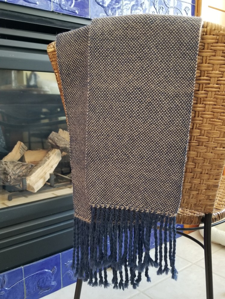 As usual, I did the hem stitch at the beginning and end of the scarf while it was still on the loom. I completed all the weaving in a couple of days. It was New Years Eve and New Years Day, so I gave myself permission to not do my usual chores. It was also a good time to stay inside due to temperatures as low as minus 20.