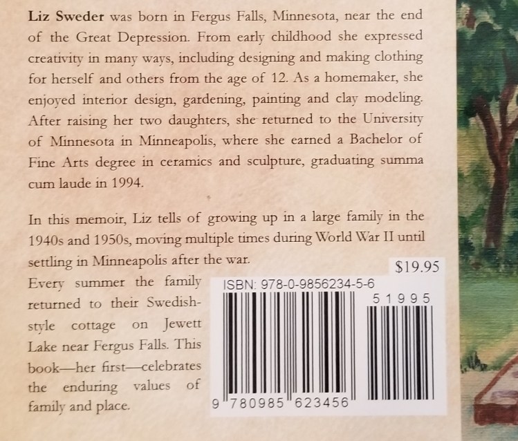 I assumed we would be able to place a copy in the Hennepin County Library system in the Twin Cities. It turns out there are some big hoops to jump through in order for that to happen. There is not enough room for every self published book, and many are not very well done. I believe that the writing quality and presentation of my mom’s book is of a higher caliber than many of the memoirs I have checked out of the library, but we decided it wasn’t worth the trouble. On the other hand, the Fergus Falls library was happy to take several copies.