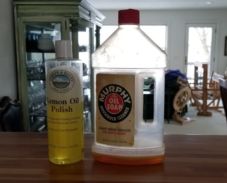 We had some Murphy’s Oil Soap in the laundry room that might have worked to clean, refurbish and preserve the wood pieces of the loom. However the container was almost empty and it is likely very very old. I regularly find food and cleaning products in the house left from my parents that is 5 or more years old. Instead of using that I bought some Lemon Oil Polish and wiped down every piece of the loom. It looked nice and clean after that.