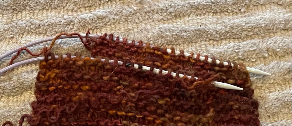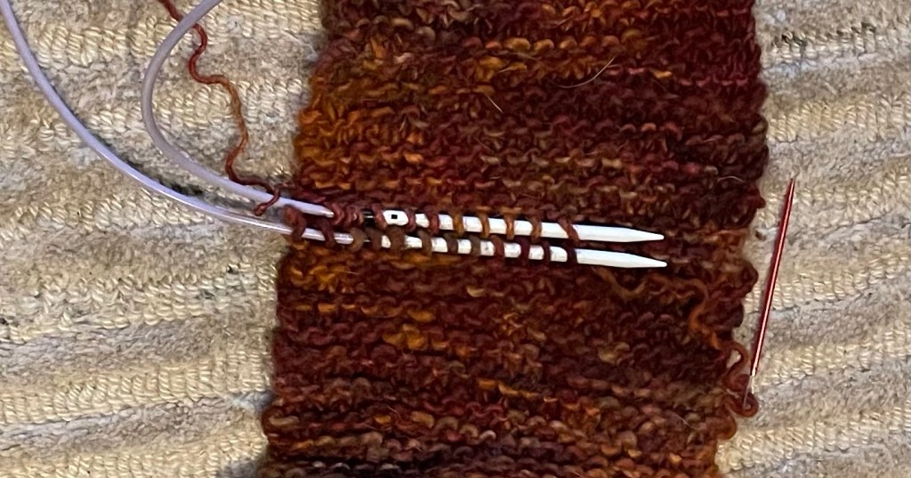 One of the these five cats ate Shelley’s scarf, probably the one that also likes to shred up toilet paper. Fixing the scarf was pretty easy. I ripped out about three rows rows of knitting that were damaged, and then grafted the two halves of the scarf back together using kitchener stitch. I had done kitchener stitch before, but on something that was knit in stockinette stitch (knit one row purl one row). This scarf was knit with garter stitch (knit every row). I was not sure if kitchener stitch was the same for garter stitch, but I found several youtube videos showing what to do. It was slightly different, so I am glad I checked.