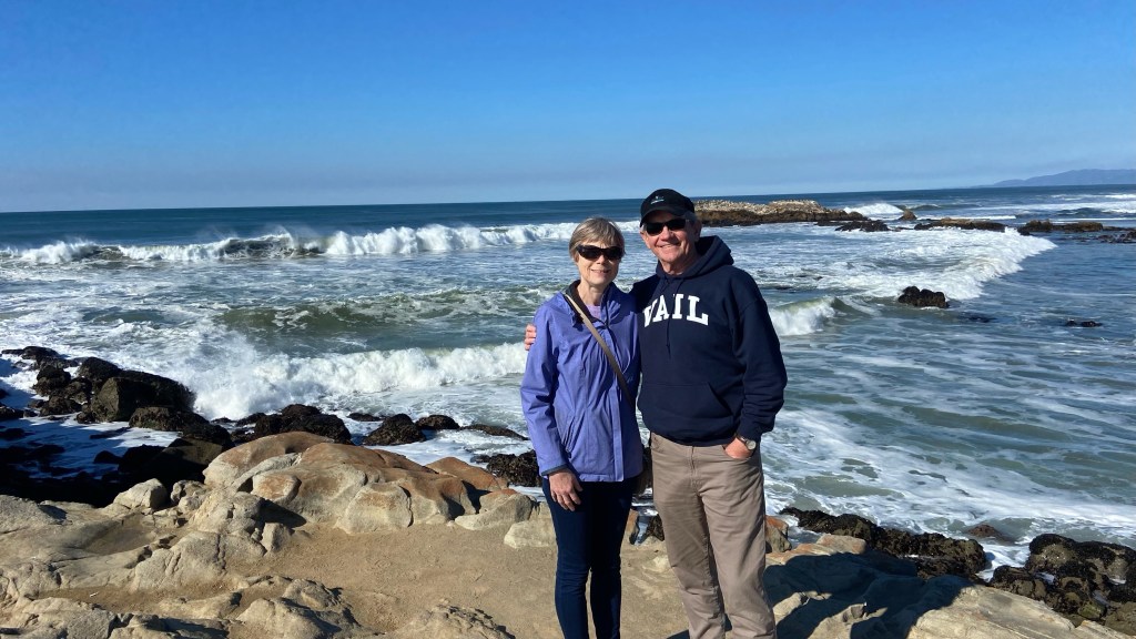 We had an afternoon adventure with Britta and Isaac driving south to Santa Cruz. As we were driving along the coast we saw massively big waves. Isaac has lived in Oakland most of his life and said he had never seen waves that big. We ended up pulling over to a place where we could park and get out of the car. Britta and Isaac walked way out on some rocks which of course made us very nervous. A park ranger came by to warn us about “Sleeper Waves”, which are random even bigger waves. In Santa Cruz we went on a scenic walk along a path high up above the coast, ate tacos for lunch, and got ice cream cones before it was time to drive back to Alameda. Following is a photo of the giant waves crashing again the rocks, with Britta and Isaac getting a little too far out for our comfort.
