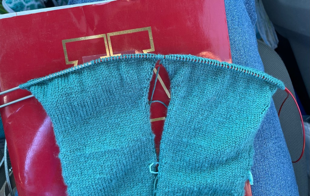 If we are in our car on a road trip I do some of the driving. When we are towing the RV Wayne does all the driving. That is fine with me as I have more time for knitting. I continued working on the sock foot while we were on the road.