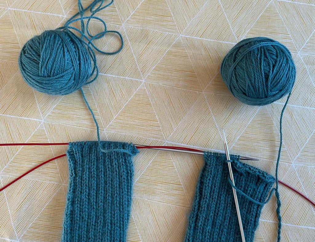 In order to knit the heel, I transferred one of the socks to double pointed needles so I could knit one heel at a time on the magic loop needles. This pattern uses a short row method with yarnovers. The instructions are very detailed and helpful but there was one place where I was unsure what to do, so I googled to see if there were some tips or help online. When doing short rows you turn your knitting around in the middle of a row, causing your working yarn to be on the left needle instead of the right. The instructions said to do a “reverse yarn over” at this point with the working yarn on the left needle. If you are a knitter you might know what this would look like, but in any case it is an awkward thing to do. I found a conversation online where another person was trying to figure this out too, beginning with “what fresh hell is this?” Haha I understood where she was coming from but I figured it out.