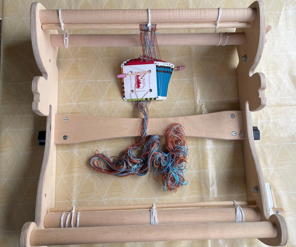 It took awhile to untangle the warp yarn, allowing the cards to slide freely.
