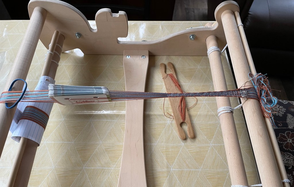 After a few inches of weaving while pulling the weft yarn tight on each pass across, the width was the way it was supposed to be.
