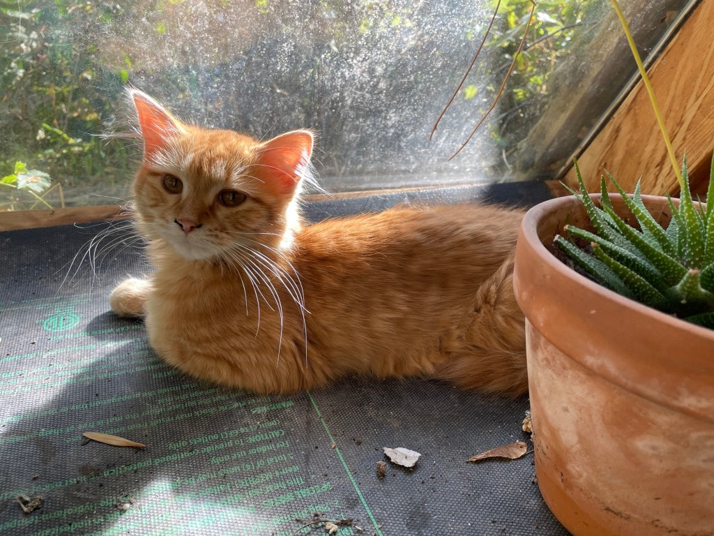 This young cat was hiding in a window well. I bet her fur would be lovely blended with some wool fiber.