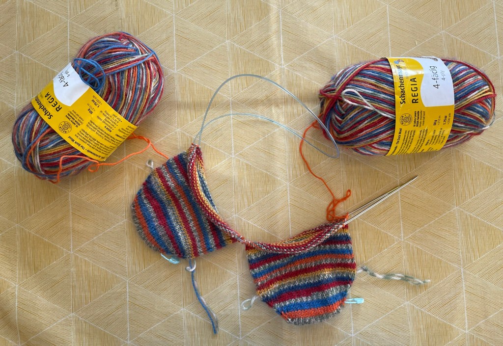 3. I’ve made socks with this yarn or something similar and I enjoy it. I knit one sock at a time on magic loop but have a book to do 2 and I think I’ll work on learning that!