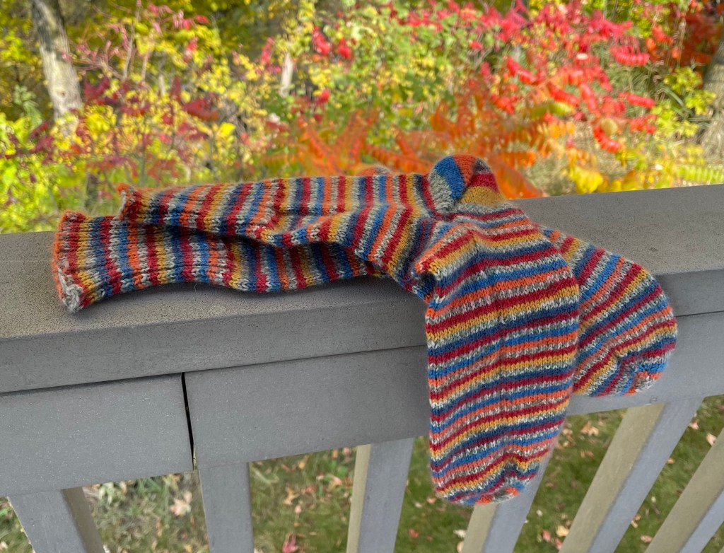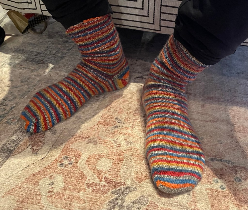 I don’t remember where the next photo was taken, but the socks were almost done at this point.