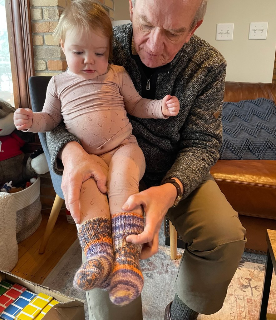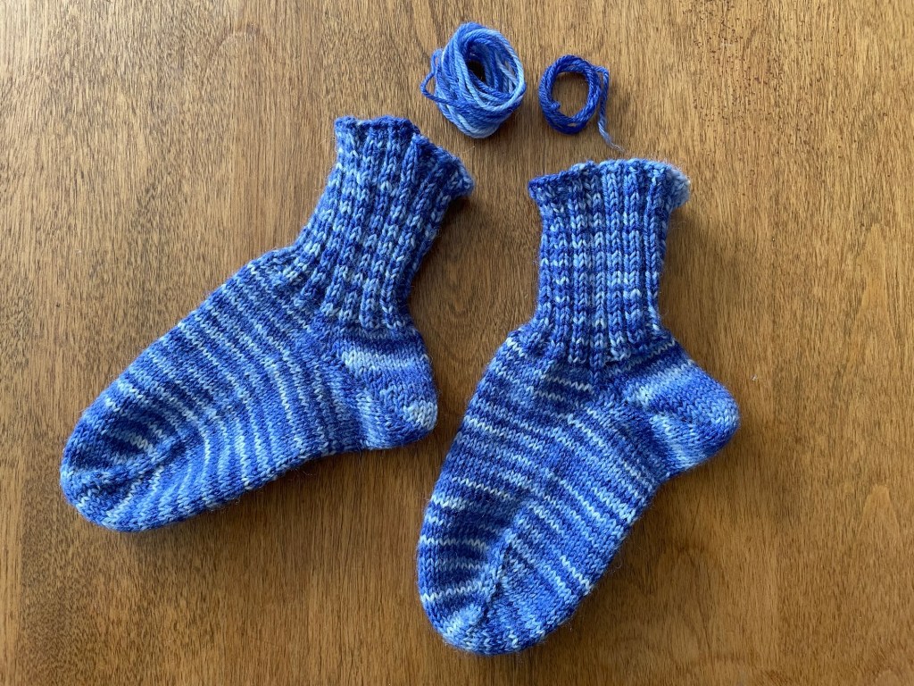 There was enough yarn left to knit a pair of matching toddler size socks for my granddaughter.