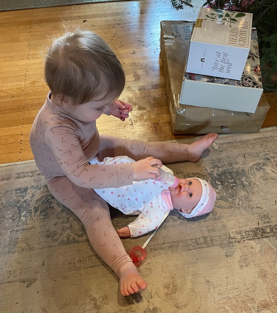 Blair knew right away to put the tiny bottle in the baby doll’s mouth.
