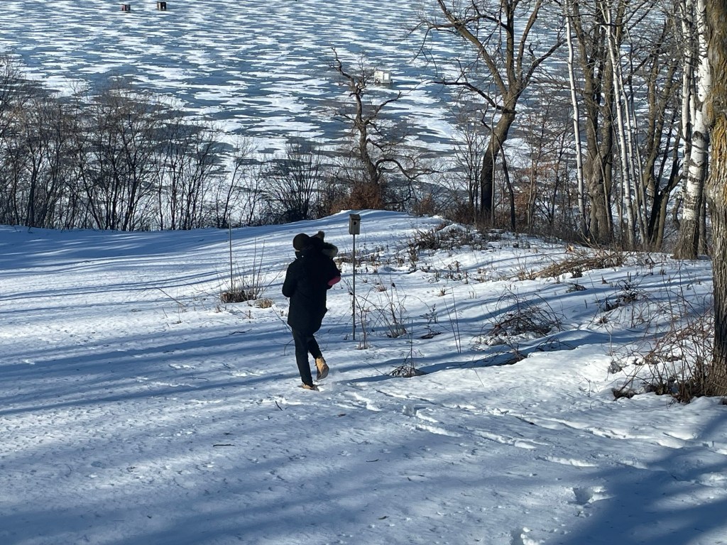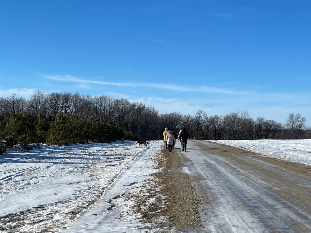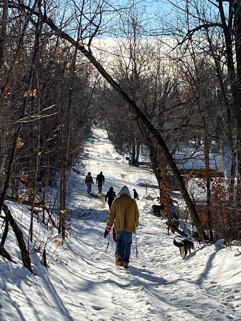 Despite cold temperatures, a group of people went for a walk. It was a little slippery but otherwise the fresh air felt good.