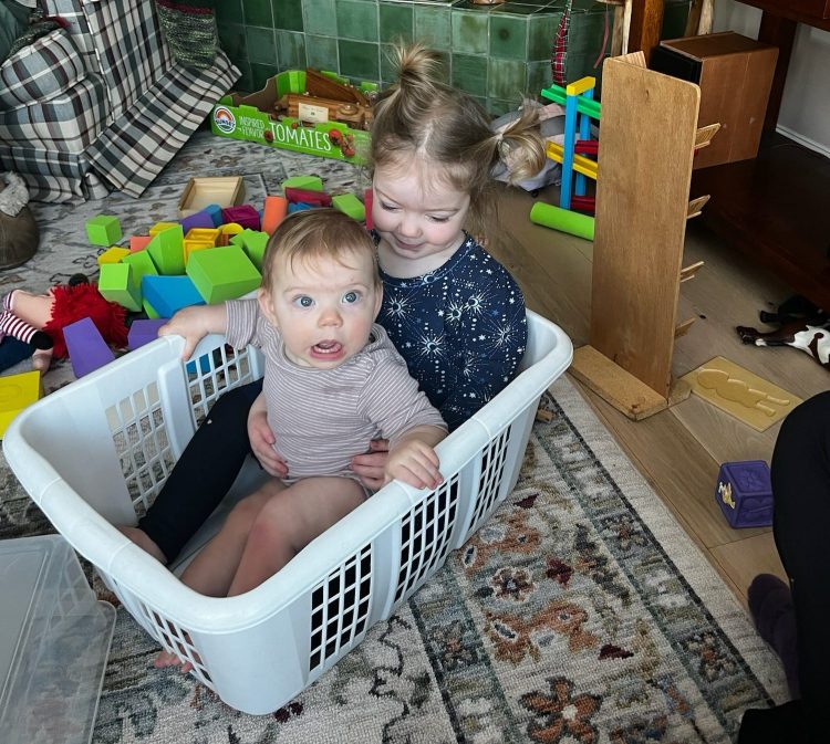 Our son James and daughter-in-law Kelsey arrived with their two young children, Blair and Nora, on Friday evening. After enduring a lot of crying and unplanned stops, they arrived for a late easy dinner of frozen pizza.