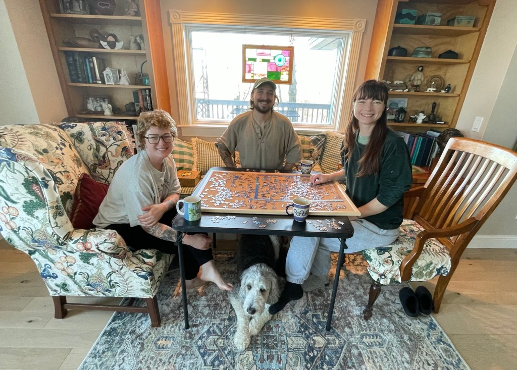 In addition to a lot of lounging, a puzzle was completed and many card games were played over the weekend.