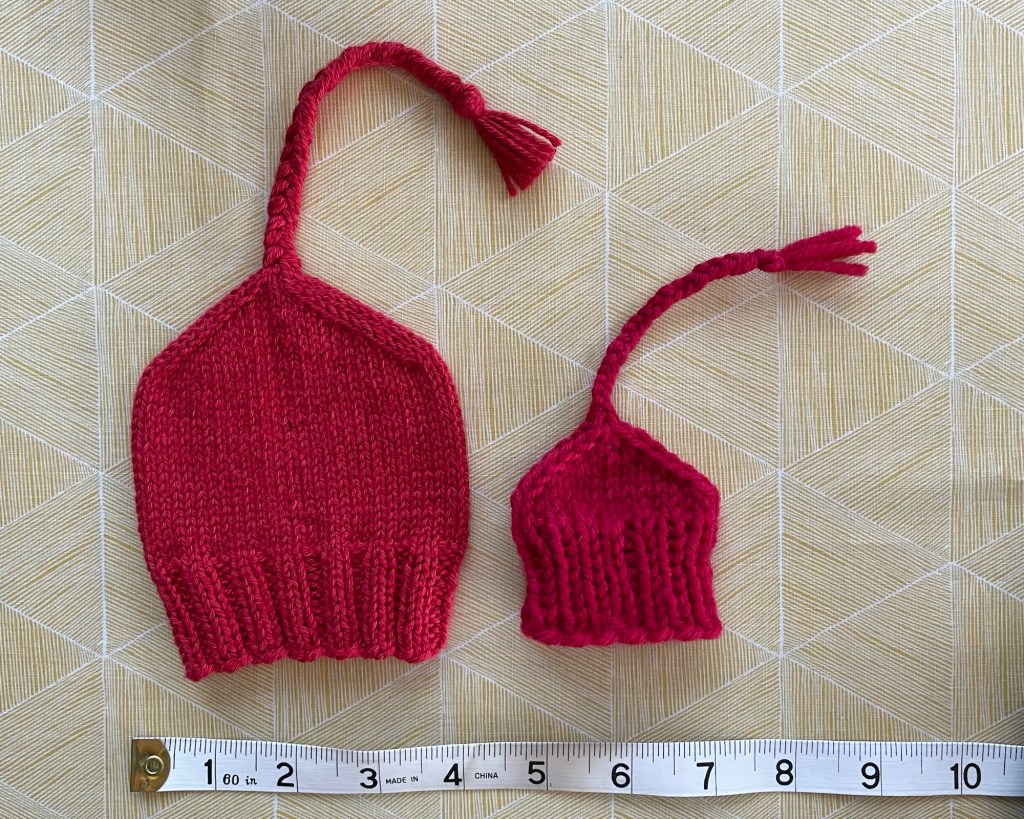 In addition to using my circular sock machine in the RV, I worked on some hand knitting projects this year in Arizona. I hand knitted four red resistance hats, plus a preemie size red hat for my friend’s new granddaughter, and a mini red hat ornament. I wrote about the red hats in this post. I finished knitting and posted here about a colorwork sweater.