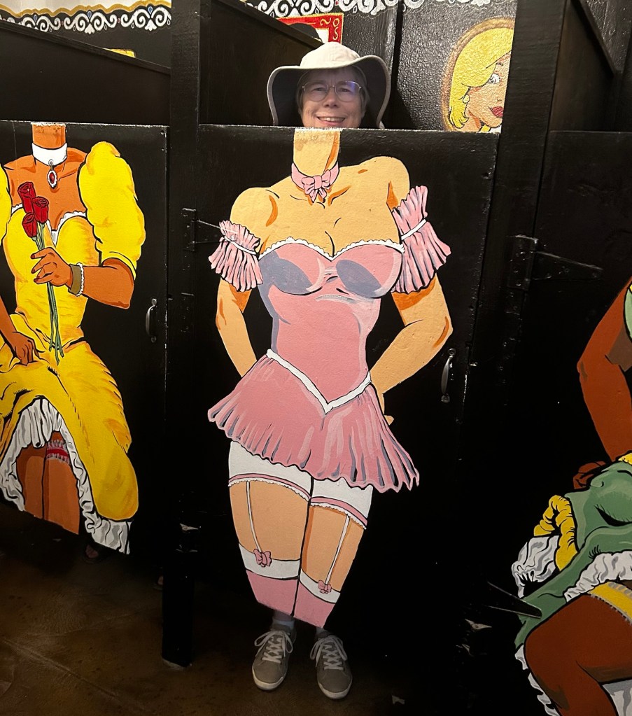 We never get tired of taking visitors on the Apache Trail Scenic Drive. I wrote about it in 2024, you can read that post here. We had an adventure with Mary Lou and Steven this year on the Apache Trail, with the intention of seeing the cliff dwellings at Tonto National Monument near Roosevelt Lake and dam. We got a late start due to roads being closed for the Lost Dutchman Marathon, near where we had agreed to leave their car at the Superstition Mountain Museum. As we were going past Tortilla Flat, there happened to be a free parking spot, so we pulled in. This place was a stagecoach stop in the early 1900’s, but is currently a tourist “town” one block long with a permanent population of six. We stopped and had a bite to eat and used the goofy bathroom.