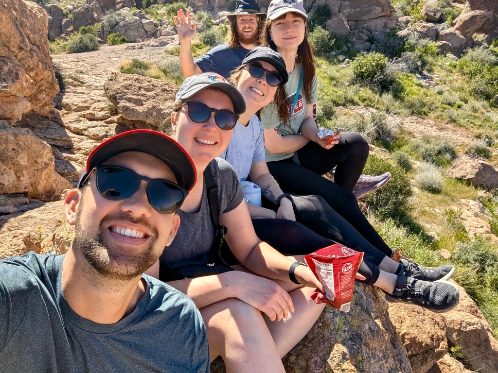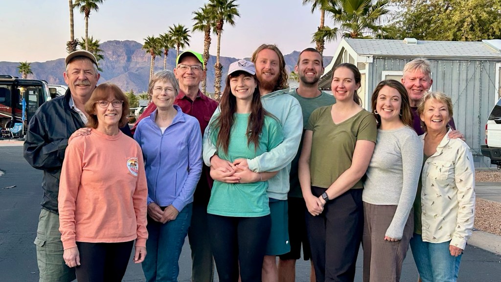 Wayne’s sister and brother-in-law, Marlene and Steve, arrived for the month of March at Gold Canyon Golf and RV Resort. Our kids came for a week at the beginning of March, overlapping with Wayne’s other sister and husband, Yvonne and Gayle, plus some nieces and a fiance. Our son and daughter-in-law, James and Kelsey, rented a large Airbnb in Mesa with a heated swimming pool. Kelsey’s parents and sister stayed with them. Our daughter and her boyfriend, Britta and Isaac, came for part of the week. There was a lot of driving back and forth between Gold Canyon and Mesa.