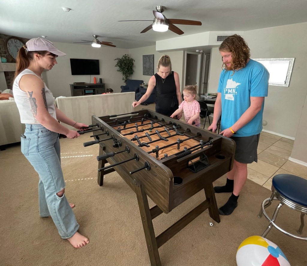 Blair learned how to play foosball.