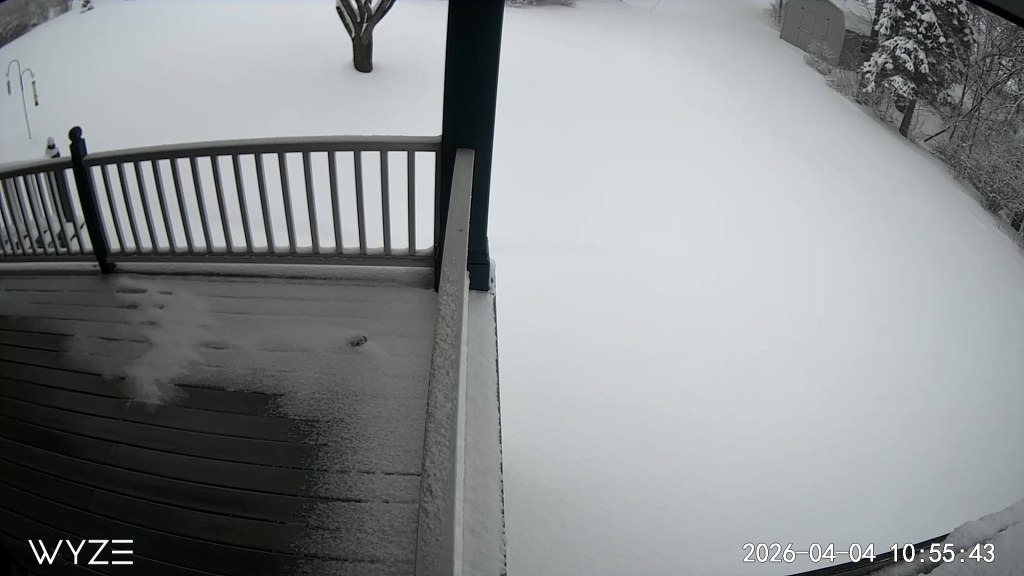 In order to not drive into a snowstorm we stayed overnight in Omaha for two nights. This time we used a free night at a Marriott hotel, and then paid for a second night. It was quite nice and a huge step up from the noisy truck stop. Wayne got this screen shot on Saturday from a camera looking out over our driveway.