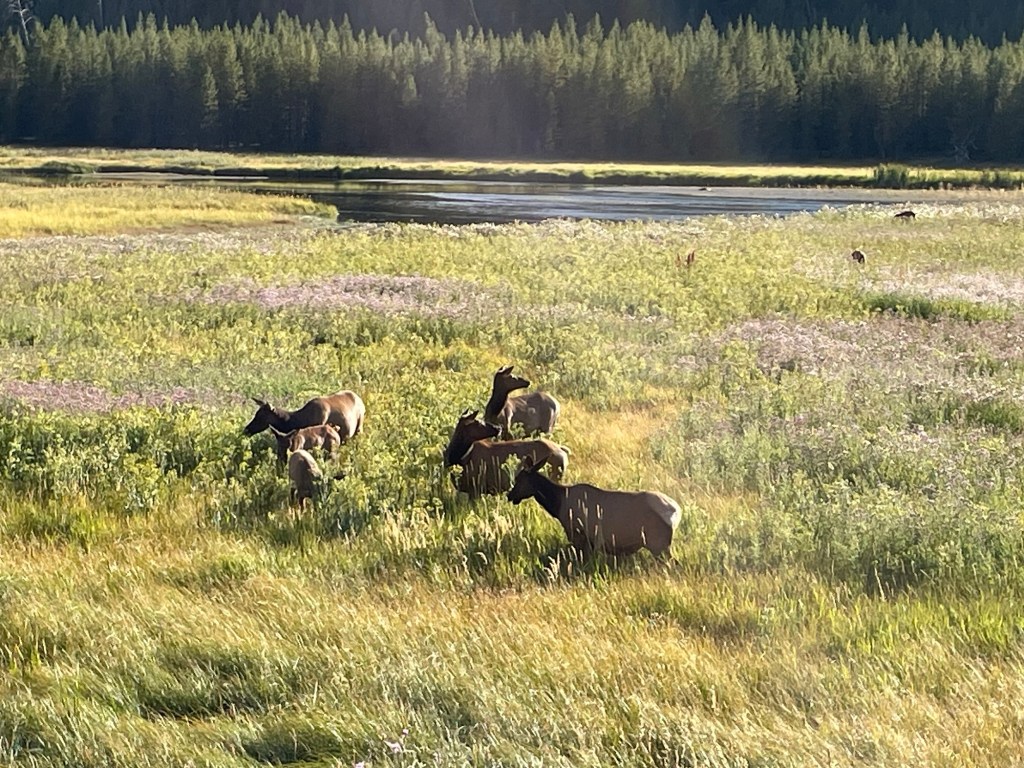 No sightseeing happened on Monday due to the problems with vehicles, and because everyone was wiped out from all the activity that had happened so far. Wayne drove our truck (it was OK to go a short distance) with Steve into West Yellowstone first thing in the morning. Wayne had found an auto service place that could look at it. Steve was able to get a ride with the tow truck taking his car two hours to Bozeman where there is a Subaru dealer. He was able to get a loaner car to drive himself back to West Yellowstone, and to use until there their car was fixed or there was another plan.