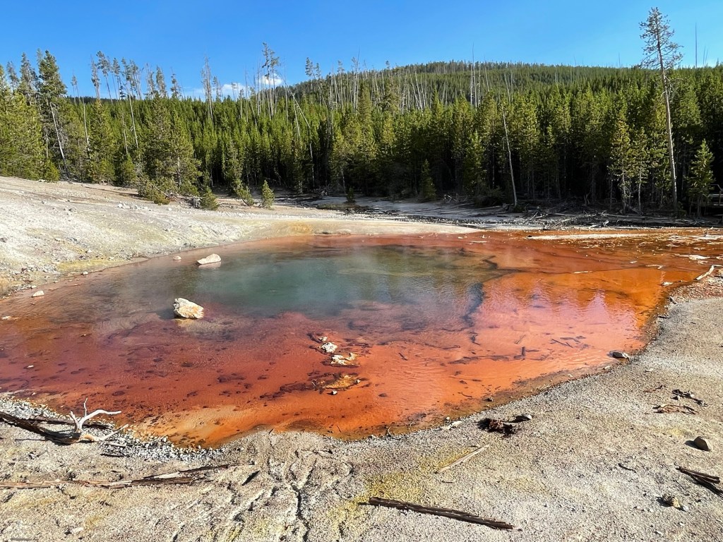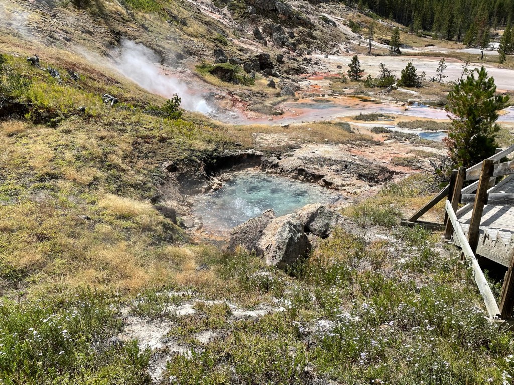Our final activity in the park was walking around “the hottest, most acidic, and most dynamic” (according to a sign) Norris Geyser Basin.