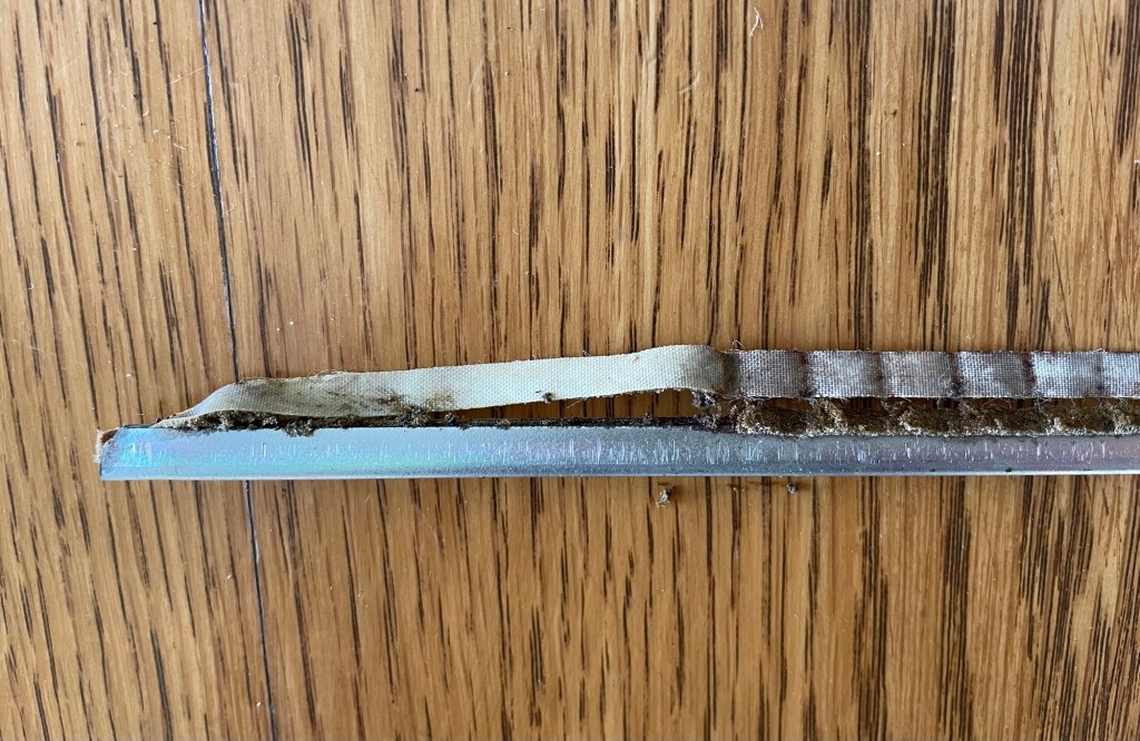 The next photo shows the only scraps that were left of the original woven fabric.