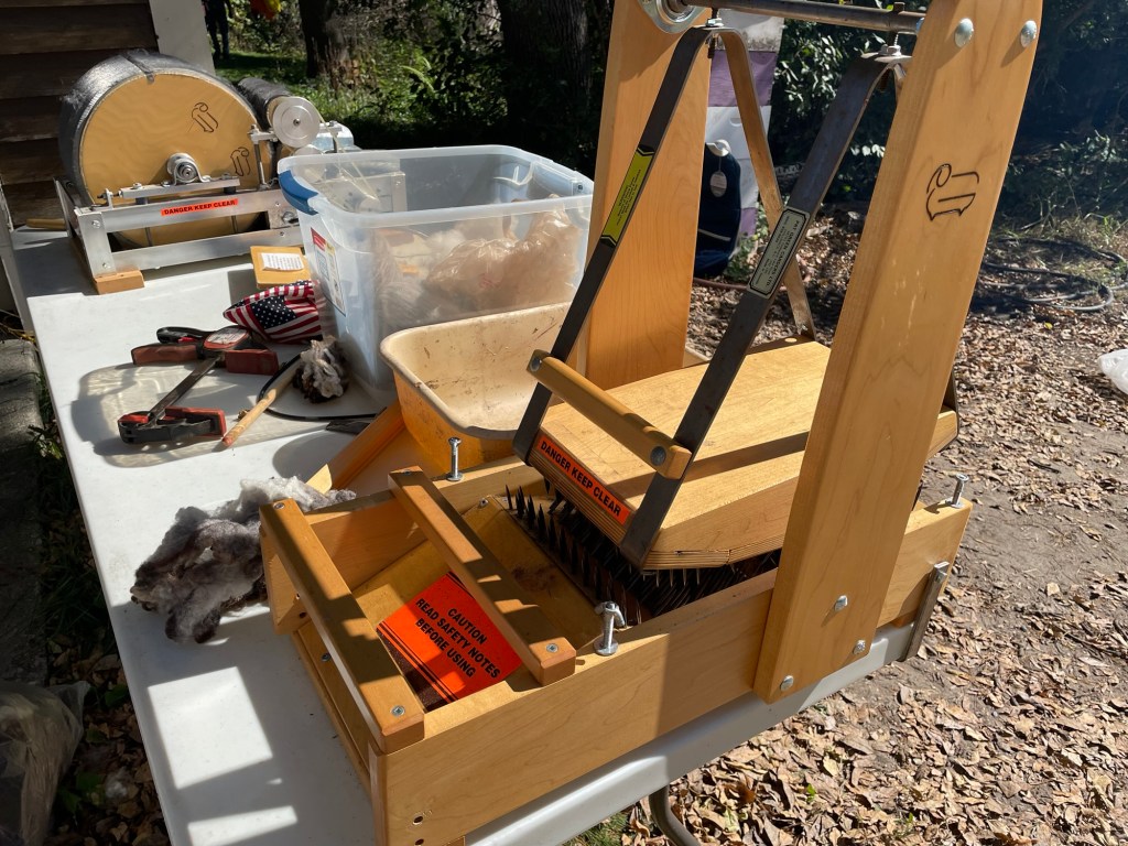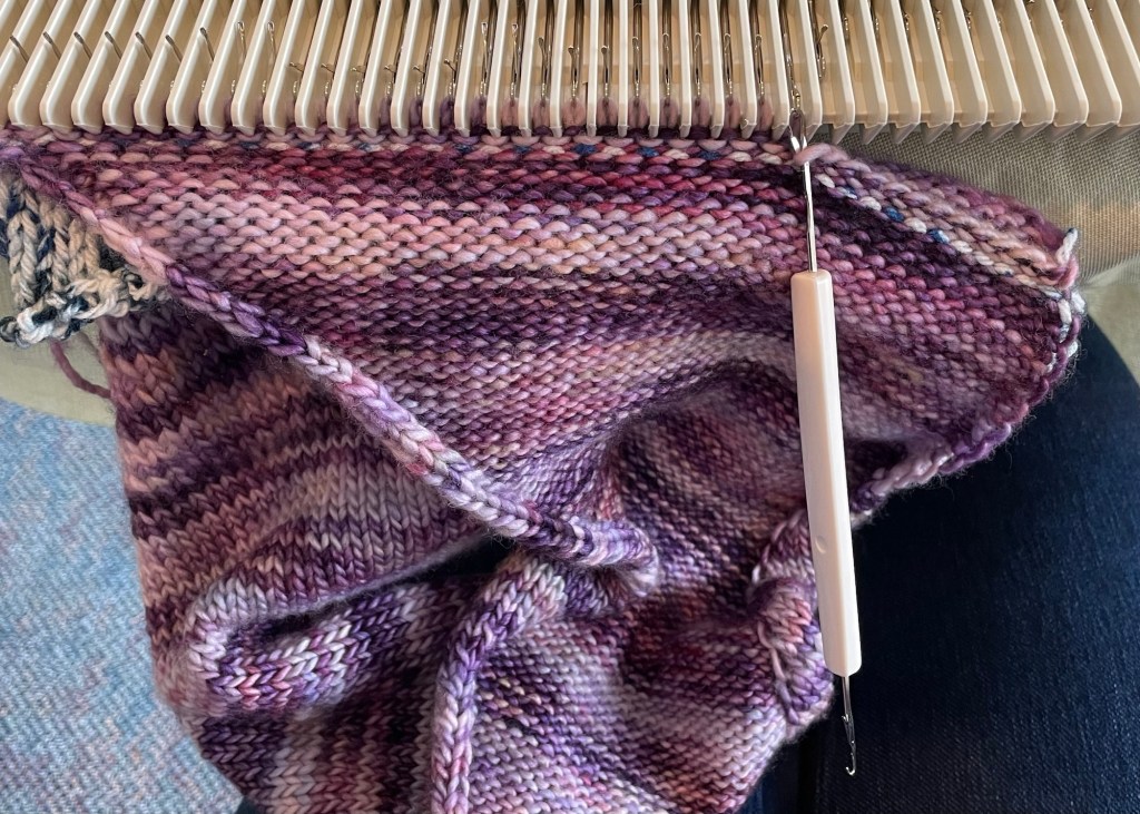 I was considering selling the loom, but I have a better offer. Torri has two flatbed knitting machines still in the boxes that she has never used, and does not expect to use. She is going to trade me the Structo Artcraft table loom for the two flatbed knitting machines. I don’t really have time to go down yet another rabbit hole, but I am interested is seeing how flatbed knitting machines work and what I could make with them. Like the circular sock machine, they can knit something up a lot faster than hand knitting. And it turns out that the School of Sweet Georgia just came out with a class on flatbed knitting machines. I watched part of it already. The instructor is Barb Barone, of Yarniversity by River City Yarns. Barb is very patient and calming to listen to. She is the “Bob Ross” of knitting instructors.