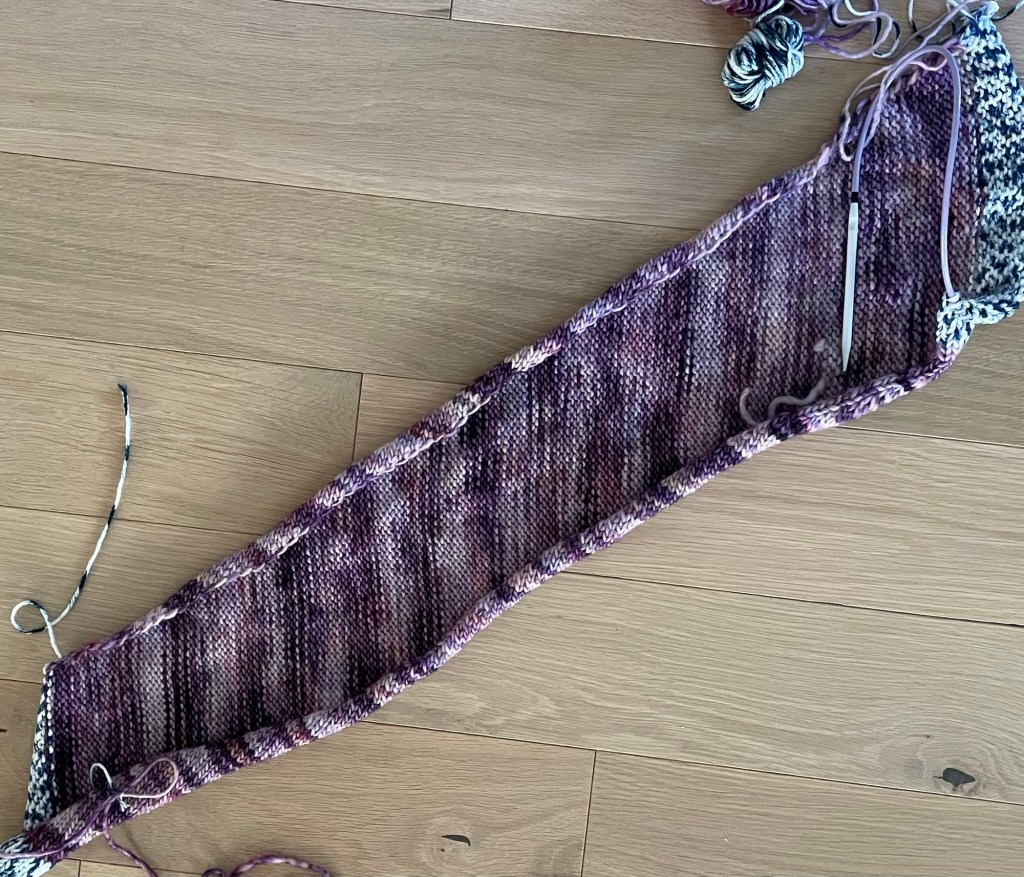 It did not take long at all to re hang the side of the sweater on the machine and knit on the sleeve over again.