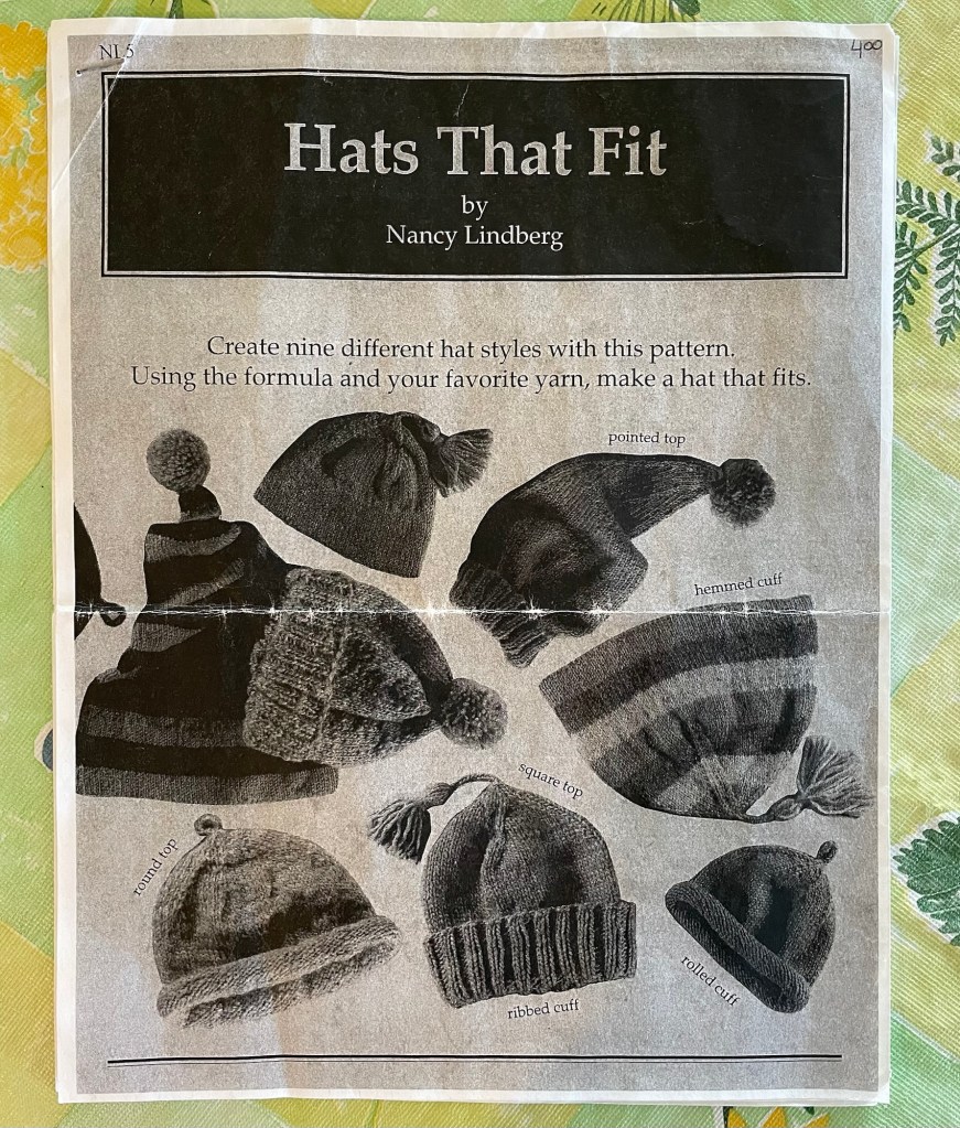 I was a little surprised that neither granddaughter protested or squirmed when I used a measuring tape to get their head circumference. Back at home I dug out an old hat pattern that I bought in paper format many years ago. It is now available here on Ravelry. I planned to knit a basic beanie with a cuff that can be folded over more or less as needed, for fit or for extra warmth.