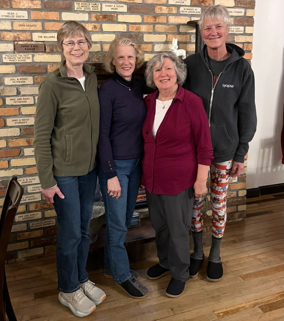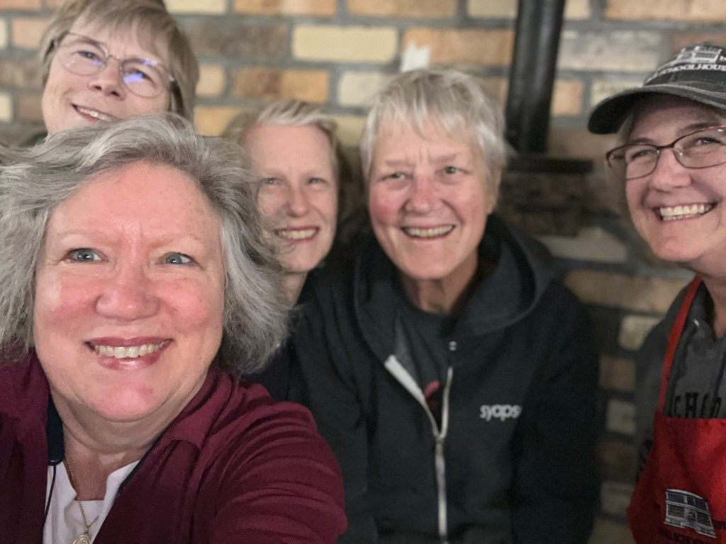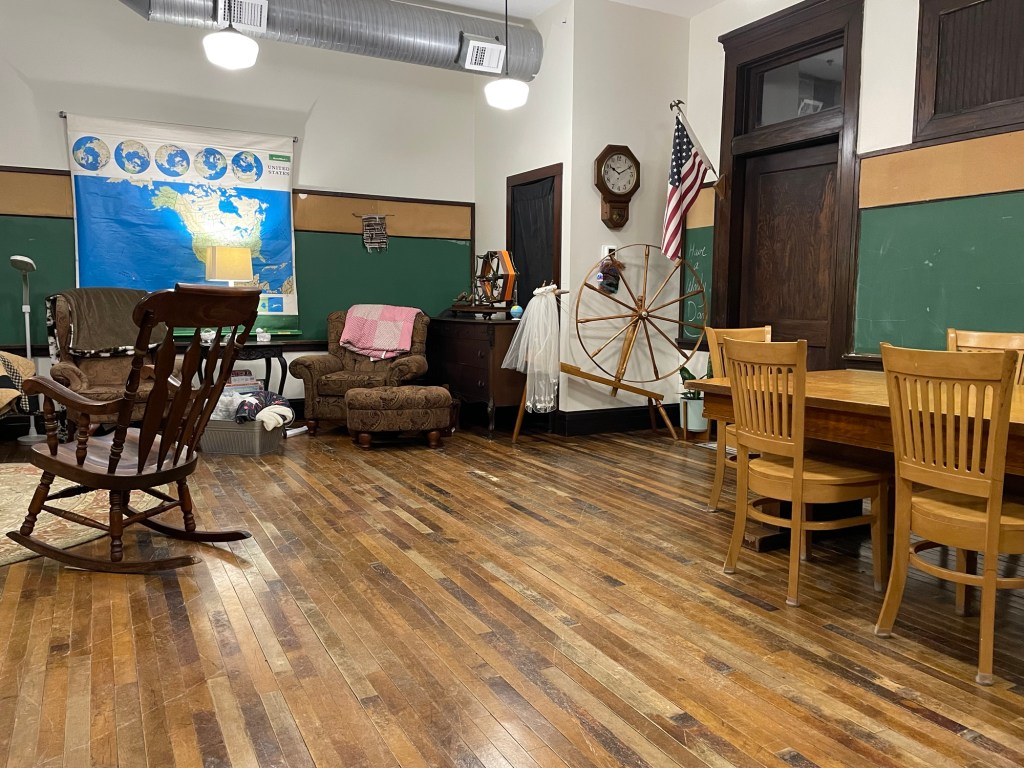The Nome Schoolhouse is an abandoned school building restored into a retreat and event center, with lodging and a fiber mill. It is located in Nome, North Dakota, about an hour west of Fargo, North Dakota. I wrote a blog post about my first visit there last year with my friend Mary. You can read about the building and that experience here. We had such a great time that we came back this November for two nights with my sister Betsy, and another friend, Mary Lou.