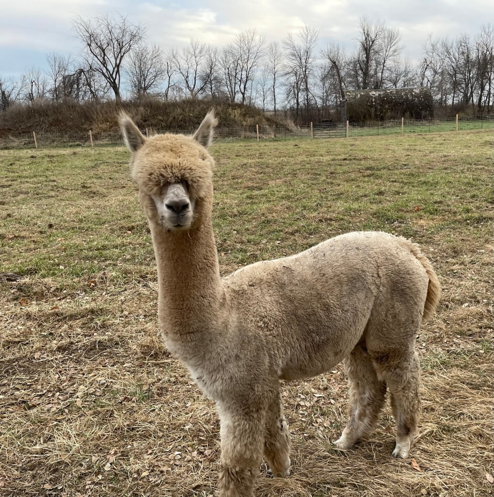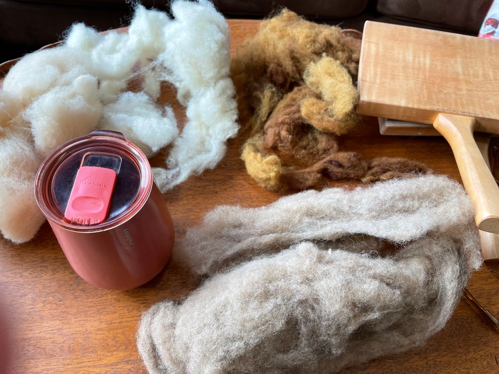 Two alpacas and two sheep were very friendly. A highland mini cow is coming to join the other fiber animals, after it is weaned from its mother. Regular cows do not have wool coats, but, according to this source, the hair on highland cows can be brushed off and spun for a durable yarn.