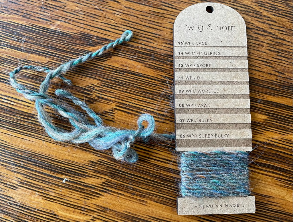 I made a lot of progress spinning samples of various thicknesses, and with different combinations of low or high twist in singles or plied yarn.