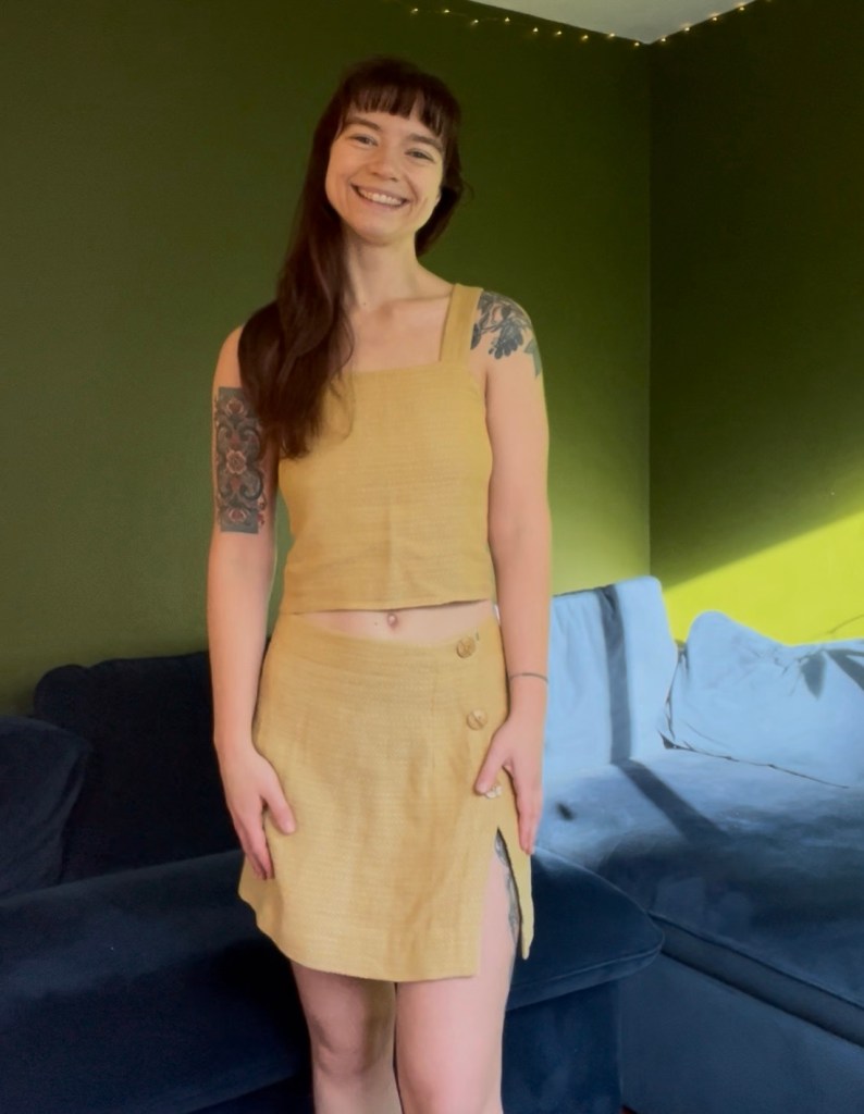 In the summer and fall of 2024 I sewed a skirt for my daughter, using fabric I wove on my four harness floor loom. I wrote about it here.