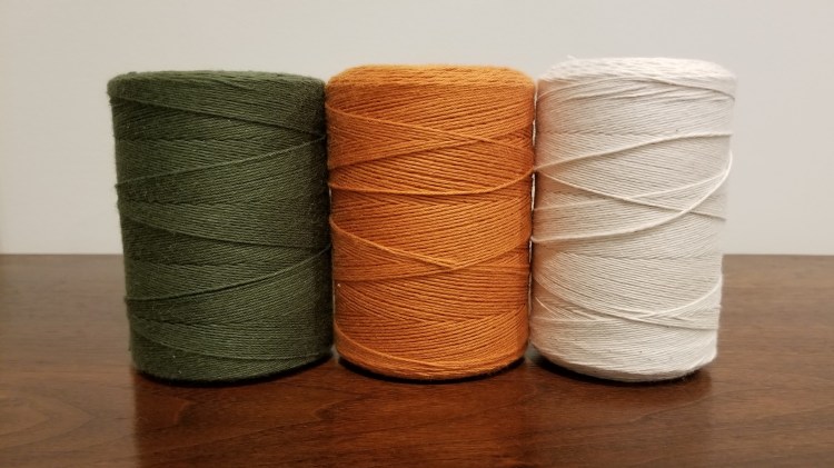 After finishing the blue towel successfully I went ahead with towel number two and three for Yvonne. She picked pumpkin orange and olive green cotton weft yarn for her towels, with the off white warp yarn.