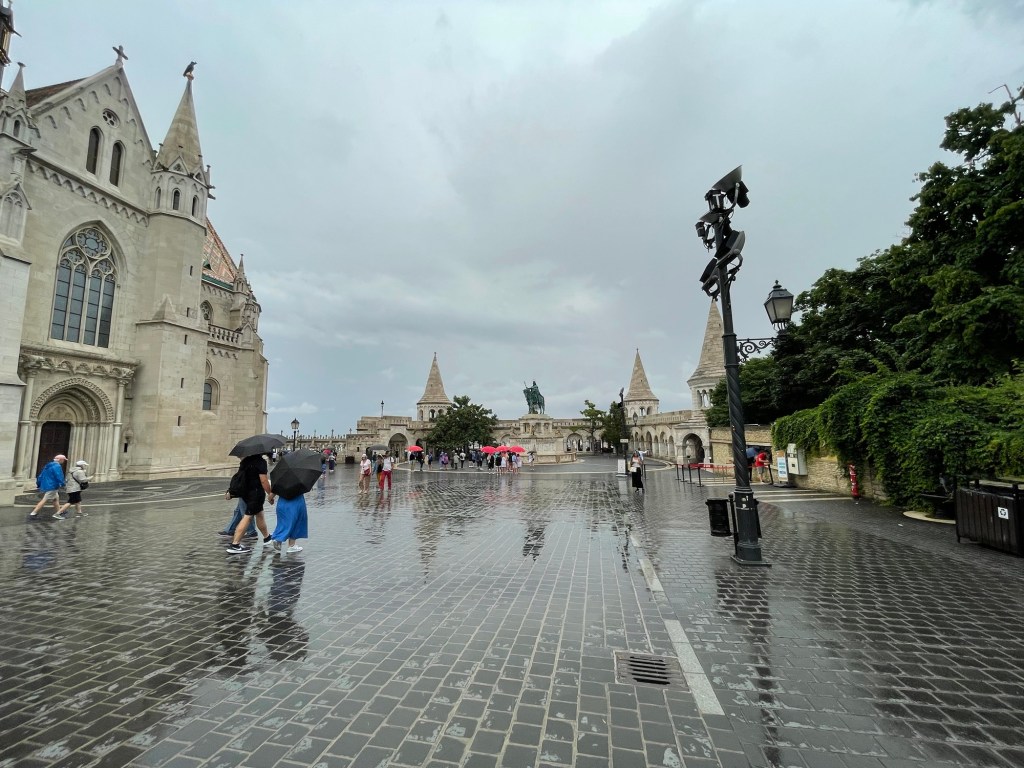 We had prepared for rain on this trip, but we lucked out and most of the time it was dry. It was raining when we went on the bus tour of Budapest. I have included a few photos taken through the bus window in the rain. Apologies for reflections and streaks of water.