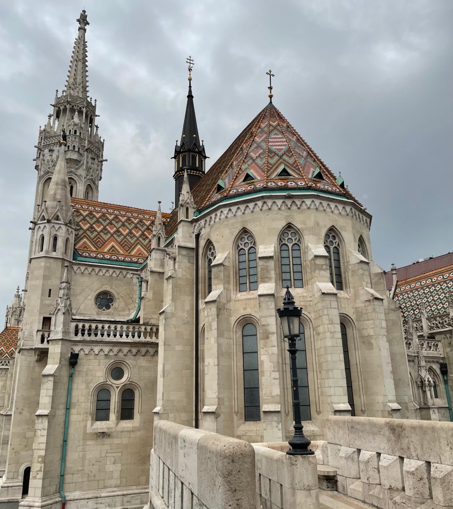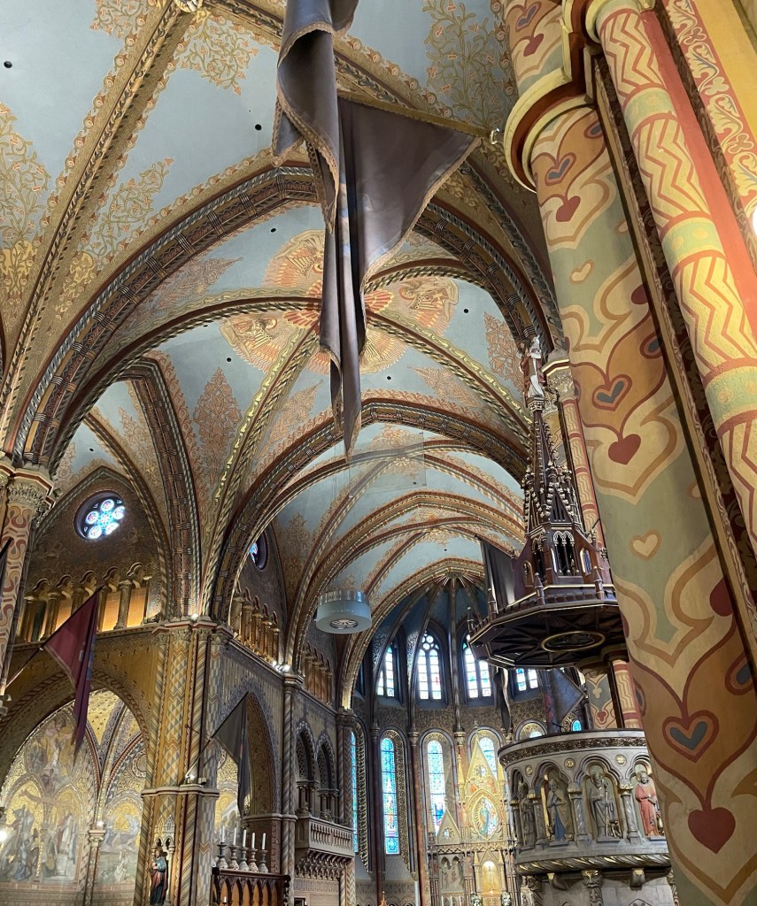 A must see in the Castle Hill area is Mathias Church. By this time at the end of the cruise and after seeing so many cathedrals and churches, most of the passengers were not psyched to go into another one. Trust me, this one is unique. There was a structure built here in the year 1015. The current structure was built in the 2nd half of the 14th century, and there were extensive restorations in the late 19th century. It has changed hands many times and been used for different religions and purposes. During WWII the crypt was used by the Germans as a camp kitchen, and then the Soviets used the sanctuary as a stable for their horses.