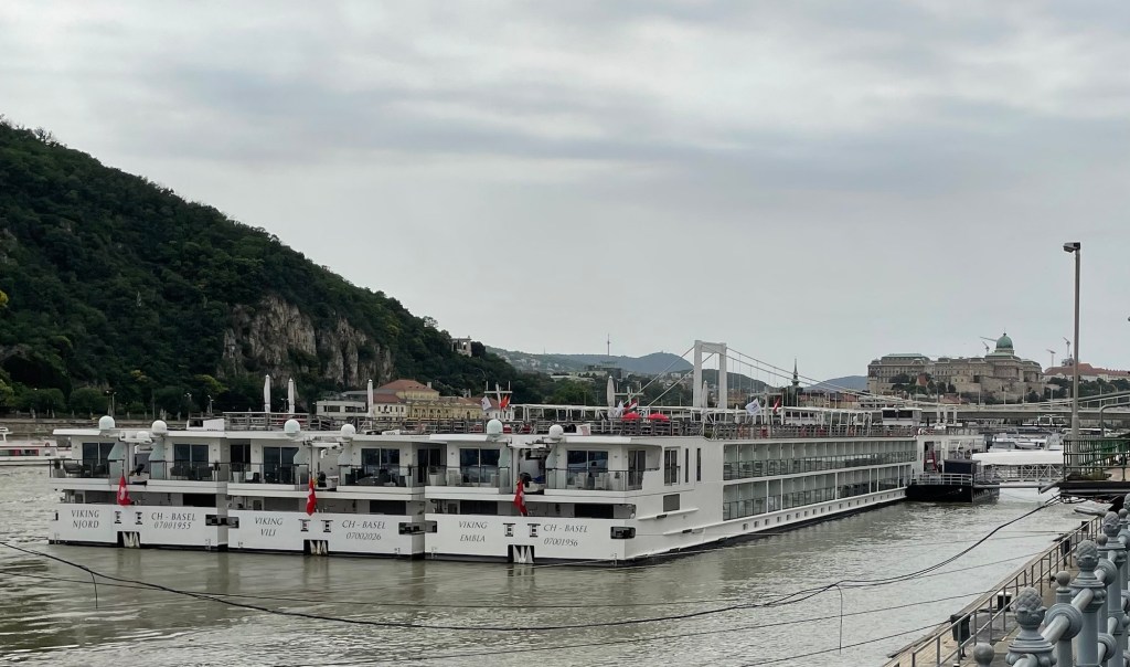 We got back from this trip near the end of June, and it is already hard to remember the details. On day six of the cruise, the ship left Bratislava, sailing all afternoon and evening. The following photo was taken with Marlene’s phone at the beginning of the cruise, but we can pretend it was on the way to Budapest. There were a few times when the top deck was a little crowded, but many times hardly anyone was there.