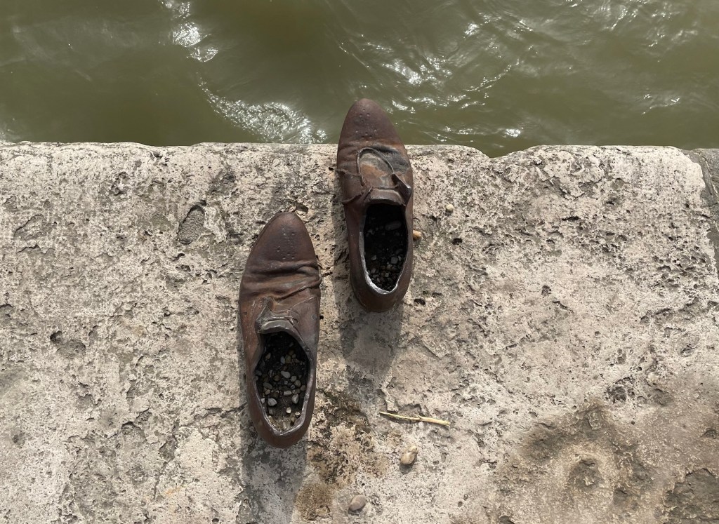 Near the Parliament building is the Shoes on the Danube Bank memorial. Sixty pairs of bronzed 1940’s men’s, women’s and children’s shoes are scattered along the edge of the river to commemorate a horrific event near the end of WWII, when Hungarian Jews were made to remove their shoes, and were then shot into the river. It is difficult to see but necessary that we do not forget.