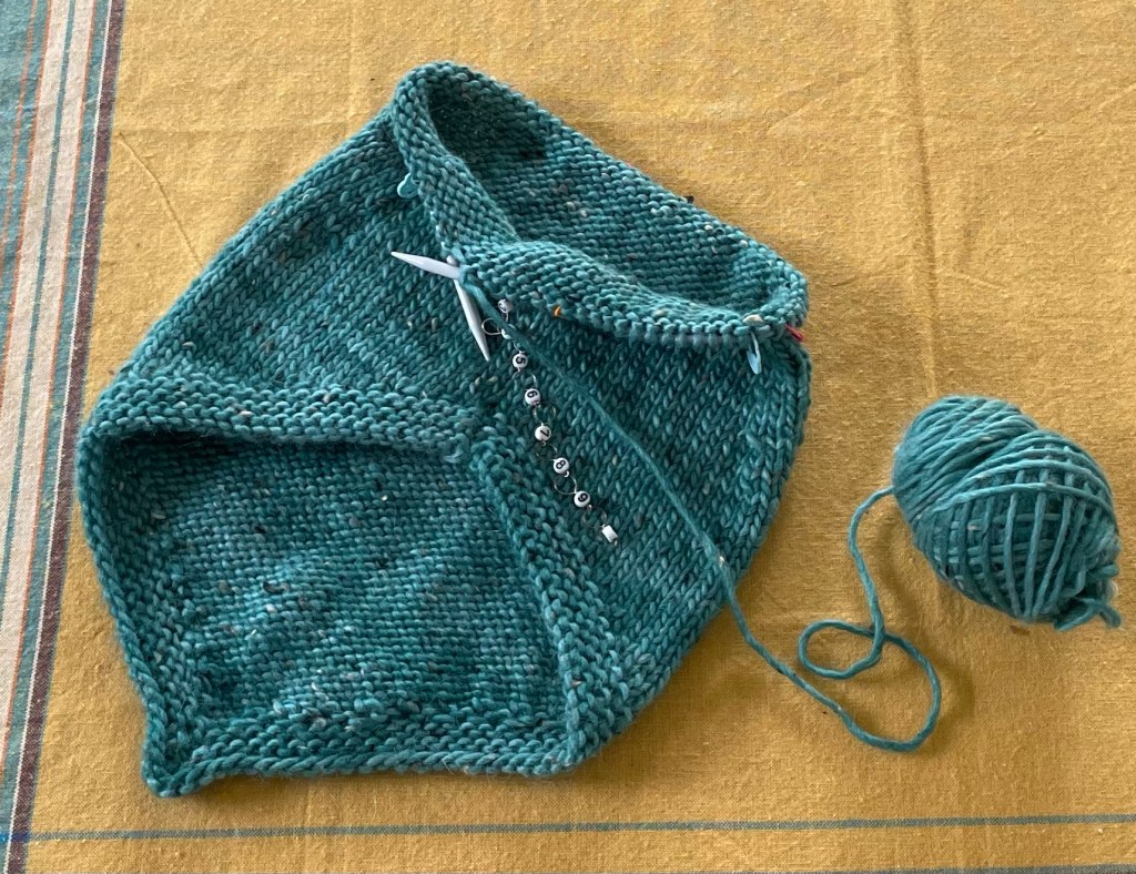 Back at home I finished the bandana / cowl that I started knitting at the airport in Minneapolis at the beginning of the trip.