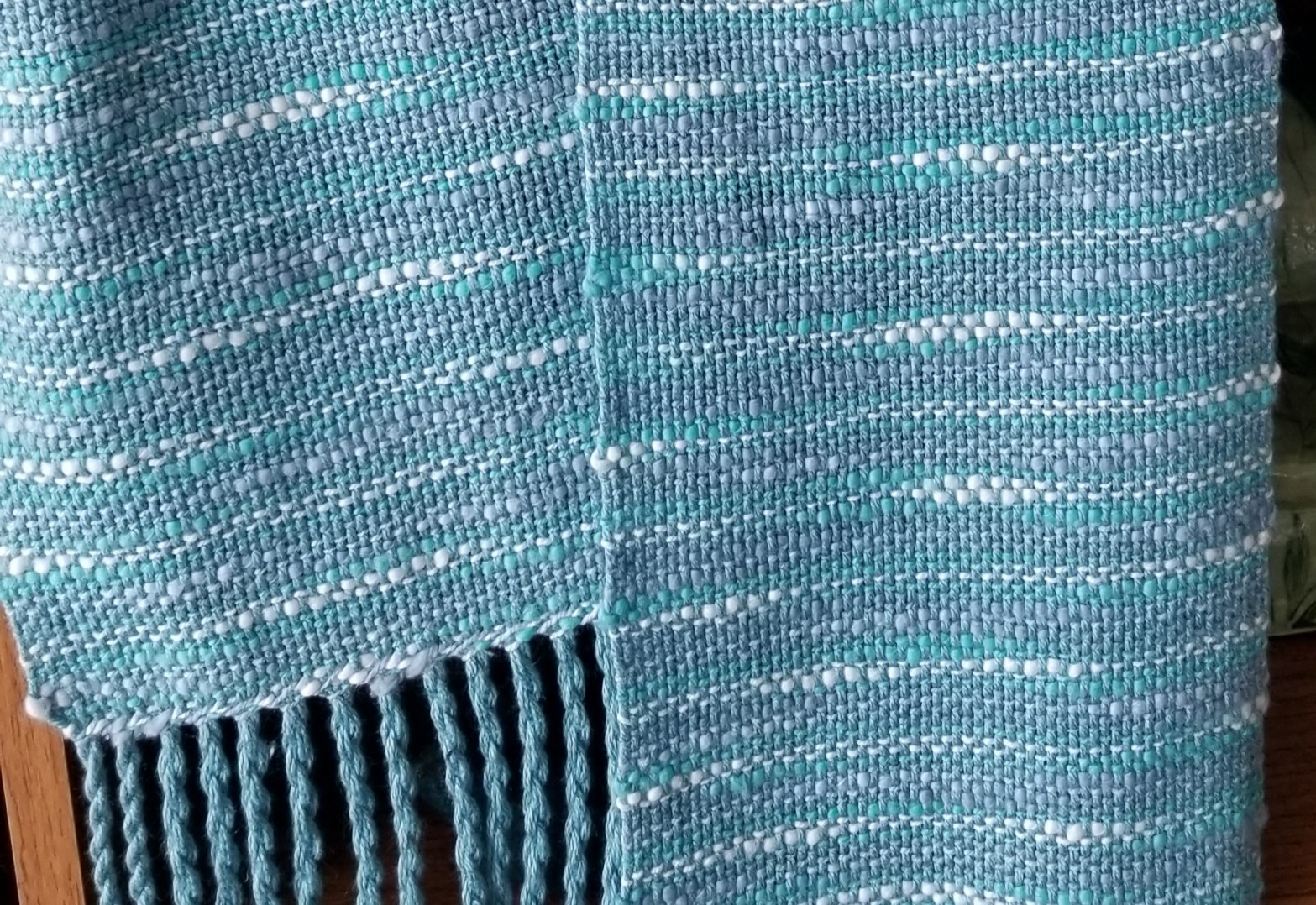 Last fall I wove a cotton scarf on my Rigid Heddle Loom with white cotton warp yarn, and using variegated turquoise, gray and white thick and thin cotton weft yarn. There is a blog post about it here. I posted the scarf on my ETSY shop and someone bought it right away. I thought itContinue reading “Scarf Version 2”
